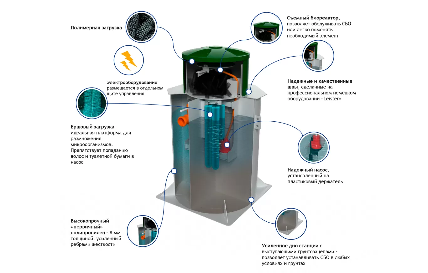 Даже если выключат электричество, СБО продолжает работать как септик, теряя только в качестве очистки воды